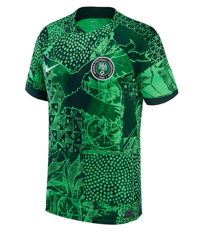 Esta camisa é a camisa mais recente da Nigéria. Foi desenhada pela Nike e apresenta um design verde e branco com detalhes em preto e azul. A camisa foi usada pela seleção da Nigéria na Copa das Nações Africanas de 2023.